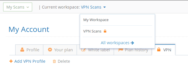 When a workspace has an associated VPN profile, all the targets from that workspace will be scanned over the VPN.